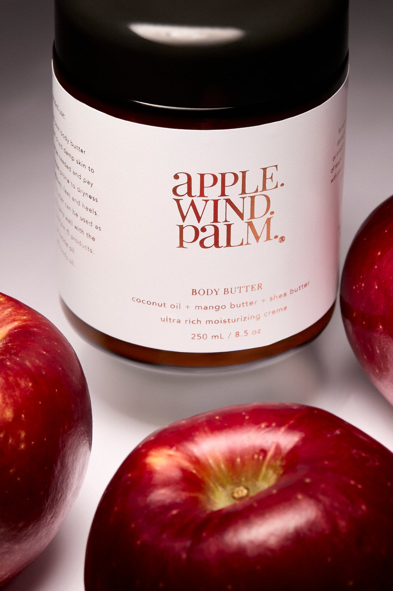 Apple Wind Palm Body Butter is an ultra rich moisturizing cream made with raw mango butter, shea butter and coconut oil. Enjoy the sweet tropical scent of Apple Wind Palm Body Butter; an aromatic mango melody that makes you feel like you've been transported to a Caribbean paradise.